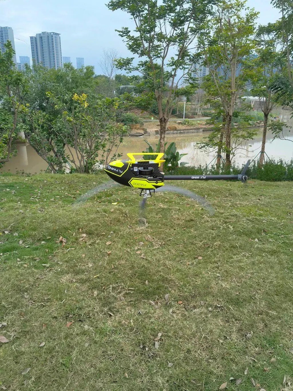 FLYWING FW200 material of the landing skid changed from carbon fiber to plastic,and the color follows the color of the helicopter
