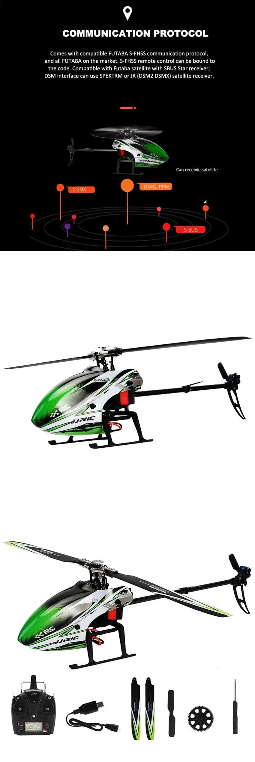 5. JJRC M03 High-strength Body: JJRC M03 superior plastic material fuselage and carbon fiber blades designed in accordance with the aerodynamic principle provide high toughness, strong power, and self-stability.
